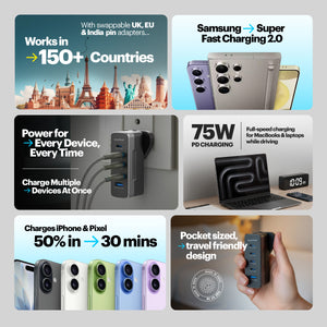 Empire 75W Multiplug GAN Charger with World Travel Adapter