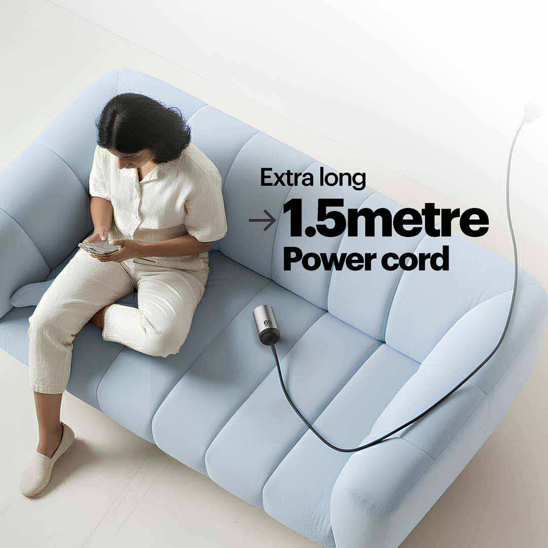 With the So Far 65W Multi-Port GaN Charger, staying powered up is not so far from where you are. Its extra-long 1.5m power cord brings your devices right to you—whether you’re lounging on the couch, working at your desk, or relaxing in bed—so you’re never tied to the wall. Packed with 2x Type-C and 1x USB-A ports and a massive 65W PD PPS output, it can charge every device you own, from MacBooks and Windows laptops to iPhones, Pixels, Samsung devices with Super Fast Charging 2.0, tablets, and more, even taking your phone to 50% in just 30 minutes. Built with premium aluminium housing, this compact powerhouse is tough, shock-proof, and travel-ready, while GaN technology, smart power management, BIS certification, and full safety protections ensure efficient, reliable, and safe charging. With the So Far 65W GaN Charger, all your devices stay closer than ever, never “so far.